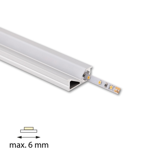 Vestavný hliníkový profil pro LED pásky, rozměry průřezu cca 24×10 mm. Součástí je mléčný difuzor, který lze do profilu nacvaknout. Tento profil je určen pro krytí a chlazení LED pásků do šíře 6 mm. Upevnění k podkladu lze provést pomocí montážních úchytů, vrutů, lepidel. K profilu lze zakoupit úchyty a koncovky.