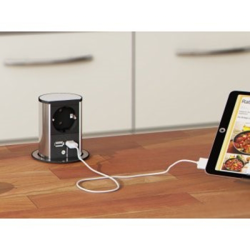 Výsuvný sloupek BACHMANN 928. 020 Elevator tvoří menší kolečko (průměr 79 mm) na desce stolu, které když stisknete, vysune se vám sloupek s jednou zásuvkou a dvěma USB nabíječkami. Hodí se na pracovní nebo konferenční stoly,…