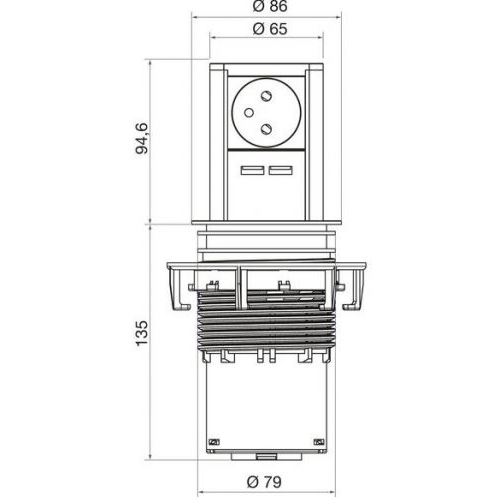 Výsuvný sloupek BACHMANN 928.020 Elevator tvoří menší kolečko (průměr 79 mm) na desce stolu, které když stisknete, vysune se vám sloupek s jednou zásuvkou a dvěma USB nabíječkami. Hodí se na pracovní nebo konferenční stoly, nebo třeba do kuchyně. Výsuvný sloupek je nenápadný a velmi praktický. Specifikace výsuvného sloupku BACHMANN Elevator 1x zásuvka, 2x USB-A, 928.020 Výsuvný sloupek BACHMANN 928.020 Elevator je vybaven 1 zásuvkou a 2 výstupy pro koncovku USB-A. Hodí se pro montáž do desek o tloušťce 16 – 40 mm. Snadno se instaluje pomocí pojistného kroužku, který se upevníte zespodu desky. Součástí balení výsuvného sloupku je 2m kabel. Pořídit si u nás můžete i jiné 230 V vidlice a zásuvky a další kabely a konektory. Nabízíme například také prodlužovací kabely s vypínačem či bez něj; jedno, dvou, tří i vícezásuvkové. Technické detaily výsuvného sloupku BACHMANN Elevator UTE Zásuvka s uzemňovacím kolíkem a dětskou pojistkou u výsuvného sloupku BACHMANN 928.020 Elevator je určena na napětí 230 V. Vyrobena z plastu a kartáčovaného hliníku. Vždy se řiďte postupem od výrobce. Zásahy do elektroinstalace provádějte jen tehdy, jste-li k takovému úkonu oprávněni. V opačném případě přenechte instalaci na odborníkovi s příslušným certifikátem. Certifikáty výrobku Výsuvný sloupek BACHMANN 928.020 Elevator 1 zásuvka 230V + nabíječka USB splňuje příslušné normy ČSN. O společnosti Bachmann Německá rodinná firma BACHMANN vyvíjí a dodává elektrické komponenty a systémy pro energetický management a multimediální technologie. Rozvodné jednotky, spojovací panely a sestavy zajistí, že energie a data jsou k dispozici přesně tam, kde jsou potřeba. Řešení značky BACHMANN najdou své uplatnění nejen v kancelářích, hotelech, výpočetních střediscích, ale i v domácnostech. V naší nabídce naleznete vidlice a zásuvky, proudové chrániče i prodlužovací kabely.