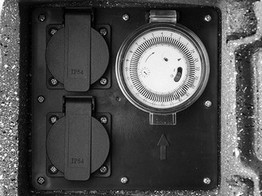 Zahradní doplněk v moderním designu se dvěma zásuvkami, jedním časovačem a přívodním kabelem o délce 1,8m. Tento výrobek lze využít jako prodlužovací přívod v zahradě, kde na sebe nebude díky svému vzhledu příliš upozorňovat. Maximální zatížení 3680W/16A Materiál: Epoxid Instalace pouze na betonový povrch. Krytí IP44