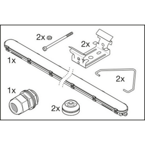 Prachotěsná svítidla, klasický tvar. Vlastnosti produktu: Vysoká světelná účinnost: až 139 lm/W. Vyzařovací úhel: 110°. Výhody produktu: Nízké blikání ≤ 10%. Rovnoměrně rozložené světlo. Úspora energie až 60% (ve srovnání se svítidly, která používají zářivky). Snadná instalace, pro zapojení není třeba žádného nářadí. 5letá záruka. Oblasti použití: Ideální pro průmyslová a skladovací zařízení. Parkoviště a podchody. Garáže. Dílny, montážní linky. Výbava / příslušenství: Včetně svorek z nerezové oceli s bezpečnostními šrouby. Včetně upevňovacího příslušenství (sada pro zavěšení, sada ochrany před odcizením).