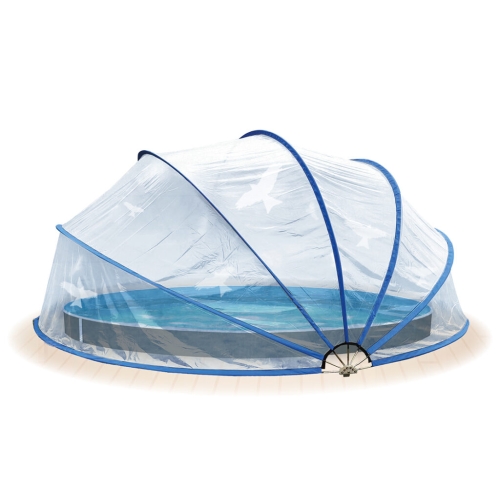 Popis produktu: Zastřešení Pool House Cabrio je vhodné pro zapuštěné i nadzemní bazény 3,66 m, vířivky, zahradní nábytek nebo například k zakrytí pískoviště. Instaluje se do země a součástí balení je sada pro ukotvení do měkkého povrchu i tvrdého podloží. Zastřešení zajišťuje přirozený ohřev vody, udržuje vodu v bazénu čistou a vyniká mimořádnou ochranou proti UV záření. Veškerá manipulace je velmi jednoduchá, zastřešení se snadno otevírá i zavírá a lze ho zajistit zámky proti vniknutí domácích mazlíčků, nebo zvídavých dětí. Pool House Cabrio vytvoří z každého bazénu krytý bazén. prodloužení koupací sezóny – ohřev vody (skleníkový efekt) udržení teploty vody během chladných dní i nocí díky průhlednosti lze sledovat dění v okolí i uvnitř bazénu snadná údržba bazénu – zabraňuje padání nečistot do bazénu chrání vodu i bazén před účinky UV záření zabraňuje nechtěnému užívání bazénu dětmi bez dozoru zabezpečuje bazén před vniknutím zvířat jednoduchá montáž / demontáž voděodolný materiál stabilní ocelový rám Výhody: Vhodné pro většinu běžných bazénů a vířivek Ochrana bazénu i vody Snižuje tepelné ztráty během nocí i chladných dní Rychlá instalace a jednoduchá manipulace Technické paramety zastřešení: rozměry zastřešení: o 5,00 m UV ochranný faktor do: 50+ je třeba si uvědomit, jaký bazén (či jiné zařízení) chcete zakrývat, pro lepší orientaci použijte níže uvedenou tabulku Průměry zastřešení v konkrétních výškách od země Výška od země Průměr zastřešení Výška od země Průměr zastřešení 50 cm 490 cm 125 cm 430 cm 76 cm 475 cm 150 cm 415 cm 95 cm 460 cm 175 cm 400 cm 110 cm 445 cm 190 cm 380 cm * Tabulka zobrazuje průměry zastřešení v uvedených výškách od země. Například ve výšce 50 cm od země je průměr zastřešení 490 cm. Snadno si tak zvolíte správnou velikost zastřešení pro váš bazén. Stačí znát výšku jeho stěny a průměr v cm. Například pro bazén o výšce 110 cm a průměru 550 cm by bylo zastřešení malé. Ale pro bazén o výšce 110 cm a průměru 400 cm je zastřešení ideální. Obsah balení: kryt zastřešení sklolaminátové tyče nástavce na sklolaminátové tyče kotvicí sada pro ukotvení do různých povrchů (kotvy do měkkého povrchu, kolíky do měkkého povrchu, kotvy do tvrdého povrchu, kolíky do tvrdého povrchu) klouby zastřešení šňůra označovací kolíky šrouby a hmoždinky pěnové podložky