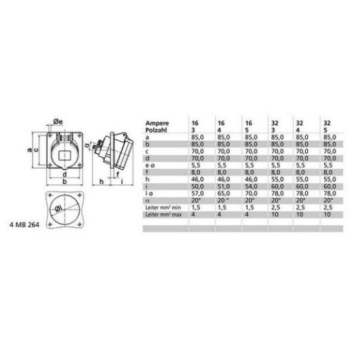 CEE zásuvka vestavná šikmá, Quick-Connect16A 3p (2P+PE) 230V (200 do 250V~) 6h IP44 frekvence: 50 a 60Hz kód barvy: modrá RAL 5015 kontakty: nosič kontaktů je vyroben z polyamidu, kontakty jsou vyrobeny z mosazi maximální průřez vodiče: 4,0 mm2materiál krytu: polyamid způsob připojení: bezšroubové pružinové klecové svorkybarva: víčko sklopné modré, kryt šedý rozměry: výška 85 mm, šířka 85 mm, hloubka 103 mm rozměr příruby: svisle 85 mm, vodorovně 85 mm rozteč montážních otvorů: vodorovně 70 mm, svisle 70 mm další technické vlastnosti:sklon 20°bezšroubové připojení vodičů QUICK-CONNECT je ověřený, trvanlivý, bezpečný a zcela bezúdržbový systém odolný proti nárazům, vibracím a výkyvům teplot. QUICK-CONNECT s optimálně nastaveným přítlakem svorky na připojovaný vodič zcela eliminuje nedostatky šroubových spojení (možnost přetažení, nebo nedotažení šroubků, slaněné vodiče není třeba ukončovat dutinkami)barevné označení vstupů, pro správné zapojení jednotlivých vodičů (dodržení sledu fází u třífázové elektrické soustavy)