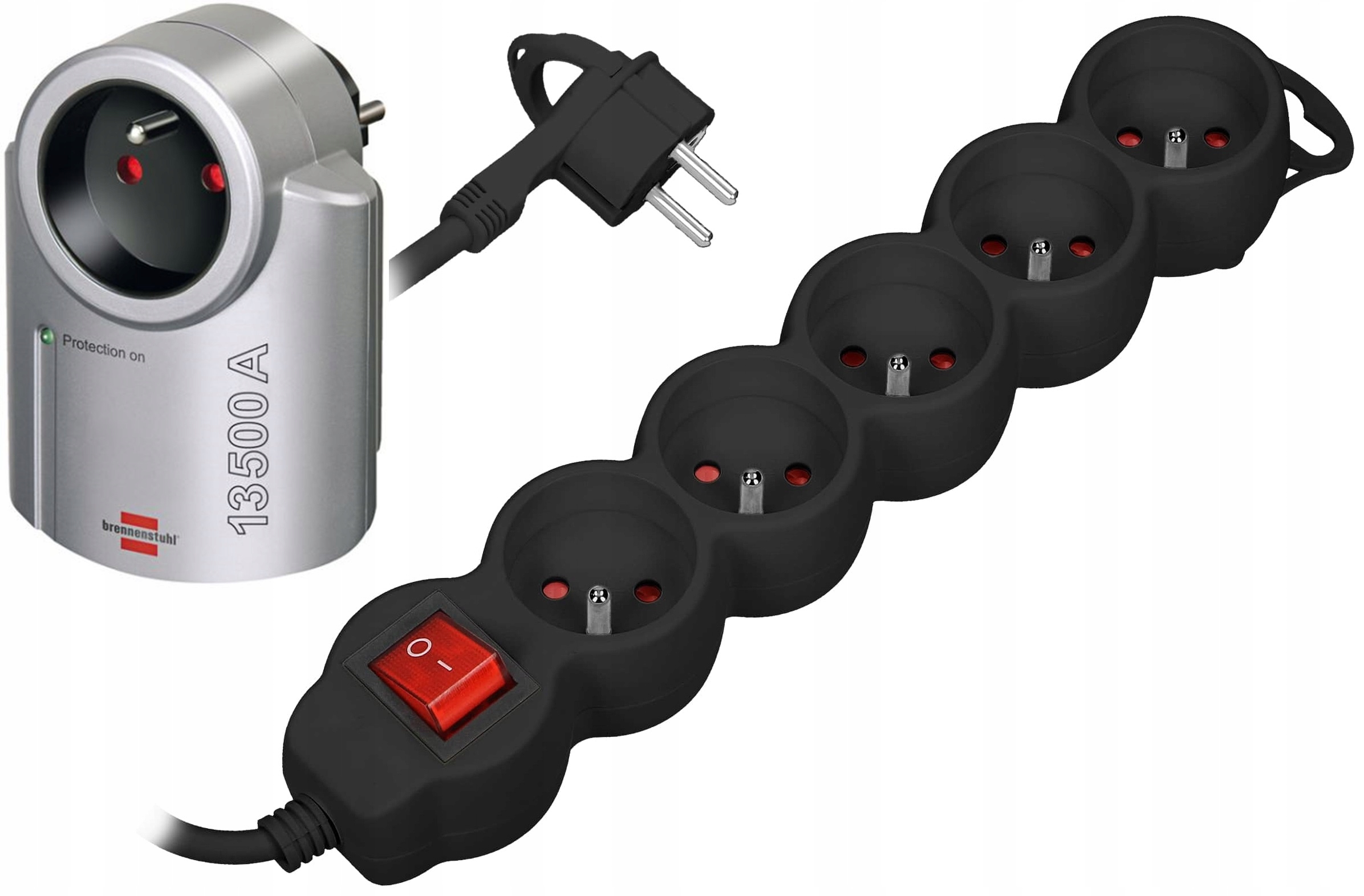 Sada se skládá z napájecí lišty s 5 zásuvkami a adaptéru proti přepětí 13.500 AOrno OR-AE-13150/B/3M 3-násobný prodlužovací kabel 2P+Z s vypínačem, 3 m H05VV-F 3×1,0 mm², Imax=10A, plochá zástrčka, černáDomácí prodlužovací kabel pro širokou škálu aplikací s pěti zásuvkami 2P+Z a hlavním vypínačem. Prodlužovací kabel má plochou zástrčku vybavenou navíc rukojetí, díky které jej snadno a bezpečně vyjmete ze zásuvky. Kabel vyrobený z PVC má délku 3 m. Černá barva prodlužovacího kabelu se skvěle hodí k RTV zařízením.Typ Domácí prodlužovací kabelNapájecí napětí 230 VACMax. zatížení 2300 WProud 10APočet síťových zásuvek 5Typ zásuvky 2P+ZStandard zásuvek French (typ E)Krytky proudových drah anoTyp izolace PVCTyp kabelu H05VV-FPočet vodičů 3Průřez žíly 1Délka kabelu 3 mStupeň krytí IP20Rozměry (šířka. /výška /hlas [mm]) 158,6 / 52 / 37,3Černá barvaDalší vlastnosti: plochá zástrčka, vypínačBrennenstuhl 1506951 Primera-Line Přepěťový adaptér 13.500A1 zástrčka 16 A/230 V.1 zásuvka 2P+T 16 A/230 V.Max. zatížení 3680 WKontrolka signalizující správnou funkci.Chrání elektronická zařízení před přepětím a chybnými proudy až do 13.500 A.Výška: 10,00 cmDélka: 7,00 cmHmotnost: 0,13 kgŠířka: 8,00 cmBarva: stříbrnáOchrana před dětmi: anoStupeň ochrany: IP20Oblast použití: uvnitř
