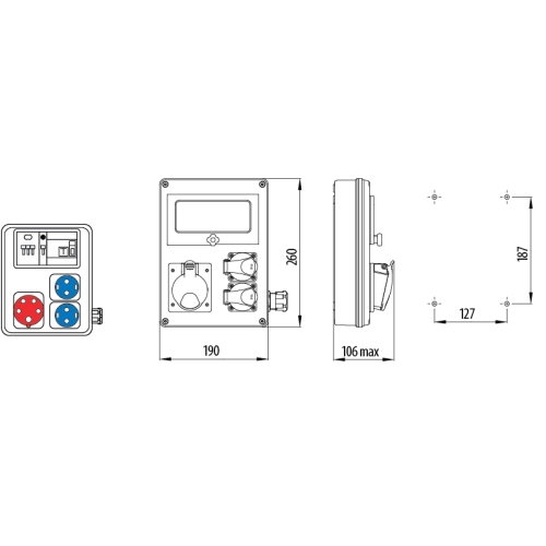 Zásuvková skříň bez chrániče ETI EDS8 2/1 32 B IP44 2x230V 1x400V/32A/5p 001105412 (EDS8 2-2/1-5 32) je vybavena jištěním 1x ETIMAT P10 1p B16 10kA, 1x ETIMAT P10 3p B32 10kA a 2 zásuvkami 230V. Specifikace zásuvkové skříně ETI EDS8 2/1 32 B IP44 2x230V 1x400V/32A/5p 001105412, jištěná, bez chrániče: Zásuvková skříň ETI EDS8 2/1 32 B z produkce české pobočky společnosti ETI je zkoušena na stupeň krytí IP44, což znamená ochranu proti tryskající vodě ze všech úhlů (po dobu 3 min), ochranu proti dotyku a částečně i proti prachu. Tato zásuvková skříň je určena k montáži na stěnu na nehořlavé podklady. Kromě toho poskytuje také stupeň mechanické odolnosti IK10. Je sestavena a zapojena v České republice. Jištění: 1x jistič ETIMAT P10 1p B16 10kA pro zásuvky 230V 1x jistič ETIMAT P10 3p B32 10kA pro zásuvku 400V Zásuvky: 2x 230V/16A, 2P+T (s ochranným kolíkem dle ČSN) 1x 400V/32A, 5 pólová CEE Pro přívodní kabel (max 5x4mm2 s dutinkami) je přiložena vývodka Pg21 Na našem e-shopu naleznete i další zásuvkové skříně a stavební rozvaděče, u kterých si můžete vybrat použití určené k nástěnné montáži, přenosné skříně nebo závěsné. Rozměry zásuvkové skříně jsou: 260 x 190 x 106mm. Technické detaily zásuvkové skříně ETI Zásuvková skříň ETI EDS8 2/1 32 B IP44 jištěná bez chrániče 001105142 disponuje stupněm krytí IP44 je konstruována pro jmenovité napětí 400V a proud 32A. Hmotnost 1500g. Vždy se řiďte postupem od výrobce. Zásahy do elektroinstalace provádějte jen tehdy, jste-li k takovému úkonu oprávněni. V opačném případě přenechte instalaci na odborníkovi s příslušným certifikátem. Certifikáty výrobku Zásuvková kombinace ETI EDS8 2/1 32 B IP44 jištěná bez chrániče 001105142 splňuje příslušné normy ČSN. O společnosti ETI Společnost ETI Elektroelement s.r.o. je dceřinou firmou společnosti ETI Elektroelement d.o.o. ze Slovinska fungující od roku 1950. Soustředí se na výrobu produktů pro elektrické instalace v bytovém, průmyslovém a elektrorozvodném segmentu. Jedná se o jednoho z předních výrobců bezpečnostních pojistek a rozvaděčů a zastává významné postavení na evropském trhu jakožto výrobce technické keramiky, plastových i gumových výrobků. V našem e-shopu si můžete pořídit například ETI jističe do 125 A, nožové pojistky, proudové chrániče, stykače, vačkové a hlavní spínače a další výrobky.