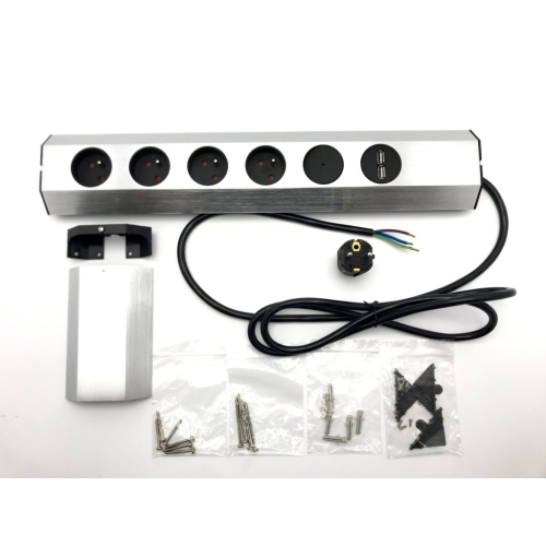 Zásuvková lišta se čtyřmi zásuvkami, dvěmi USB nabíječkami a vypínačem v moderním designu, která skvěle zapadne do všech typu kuchyní i pracovních míst. Vypínačem lze vypnout všechny 4 zásuvky a díky tomu nemusíte pokaždé vypojovat používané spotřebiče ze zásuvek. Díky USB nabíječkám (max.15W) můžete mít vždy přístup například k receptům v elektronické podobě atd. na vaší pracovní ploše. Lištu lze montovat jak na výšku, tak i na šířku. Tím dosáhneme snadného přístupu k zásuvkám co nejblíže naši pracovní plochy. Při montáži na výšku mezi pravovní desku a horní skříňku kuchyně je v balení dodáván také nastavovací prvek v designu lišty pro vyplnění celého prostoru. Díky jednoduché montáže je lišta vhodná také pro dodatečnou montáž. Součástí balení je 2 m napájecí kabel s přiloženou vidlicí do zásuvky k přišroubování na vyvedený kabel. Délka zásuvkové lišty je variabilní díky přídavnému adaptéru a to od 457 mm (bez adaptéru) až po 585 mm. Jaké jsou hlavní přednosti? jednoduchý způsob pro rozšíření počtu zásuvek u pracovní plochy elegantní využití prostoru kvalitní zpracování: pohledová lišta je z hliníku, který je zbroušený do vzhledu nerez rychlost a variabilita při montáži