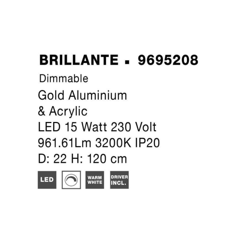 Závěsné LED svítidlo NOVA LUCE BRILLANTE 16W 3200K 9695208 stmívatelné Triac