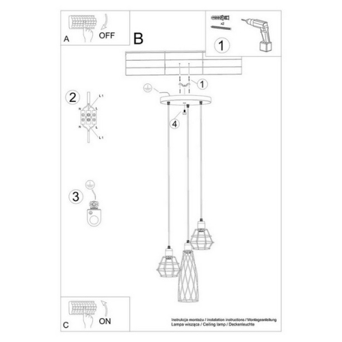 57 KčZávěsné svítidlo SOLLUX SUBA 3P černé E27 3x15W bez žárovky SL.1166
