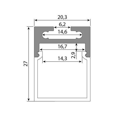 Závěsný hliníkový profil pro LED pásky, rozměry průřezu cca 20×27 mm. Součástí je mléčný difuzor, který lze do profilu nacvaknout. Tento profil je určen pro krytí a chlazení LED pásků do šíře 16 mm. Upevnění k podkladu lze provést pomocí montážních úchytů nebo lanek. K profilu lze zakoupit úchyty a koncovky.