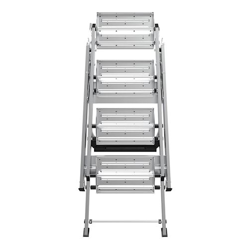 Safety Step ™ Pokud pracujete na projektu, který nepotřebuje žebřík, potřebujete jednoduchou a snadno použitelnou stoličku. Safety Step je lehká hliníková stopička. Je k dispozici ve 2, 3, 4 a 5 schůdkových modelech. Jedná se o schůdky typu IA pro zatížení 150Kg. které splňují nebo překračují všechny standardy OSHA a ANSI. Protiskluzové schody Safety Step je navržen pro maximální pohodlí. Při stoupání a klesání po žebříku vám design schůdků pomůže, abyste se cítili, jako byste šli po schodech nahoru a dolů. Protiskluzové nášlapy zabraňují ztrátě rovnováhy. Schodišťové stupně jsou ideální pro situace, kdy potřebujete dočasné schodiště, například při stavbě domu nebo při svařování schodů. Extra široké nohy Široké pogumované nožičky vám pomohou pracovat na roštech nebo jiných površích, kde by mohly uvíznout menší nožičky žebříku. Integrované kolečka vám usnadní manipulaci se schůdkami. Vysoké zatížení Safety Step je dimenzován na 150kg. a splňuje nebo překračuje všechny standardy OSHA a ANSI. Pro menší úkoly, které vyžadují pevné a bezpečné schůdky , jsou schůdky Safety Step přesně pro vás. ##VIDEO:https://www.youtube.com/embed/6ekQ2Z2KqEE##