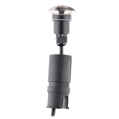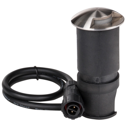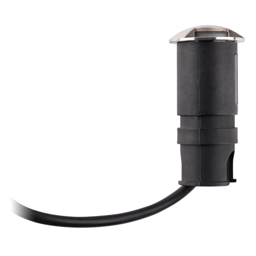 Zemní LED svítidlo Ground S z nerezové oceli 316, příkon 3W, napětí DC24V (zdroj není součástí dodávky), barva světla denní bílá 4000K, světelný tok 10lm, stupeň krytí IP67, index podání barev CRI 80, součástí svítidla kabel 0,5m (2×0.75mm²), směr světla boční 1×120°, životnost 25 000hod., vnější rozměry Ø48x100mm. Zatížení 500 kg. Součástí je naletovaný konektor pro připojení k napájení.