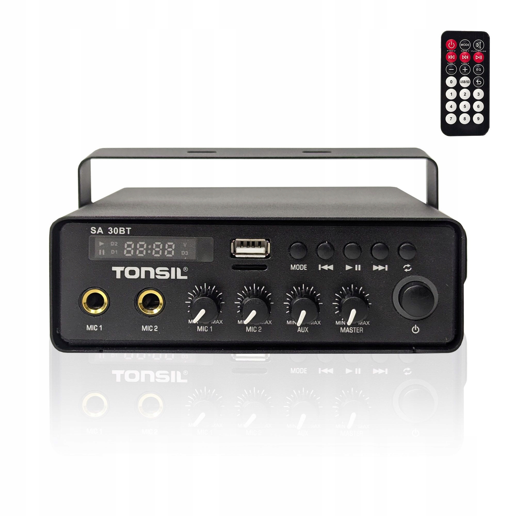 Kompaktní výkon a naprosté pohodlí – poznejte Tonsil SA 30 BTTonsil SA 30 BT 1 Zone je mimořádně funkční, lehký a mobilní zesilovač, vytvořený pro ozvučení malých místností, servisních míst, obchodních prostor a mobilních instalací. Kombinuje kompaktní design s rozsáhlými možnostmi připojení a nabízí snadné použití v každé situaci – jak při stacionární práci, tak i v terénu.Plná kontrola zvuku a flexibilní připojeníModel SA 30 BT nabízí modul Bluetooth , AUX vstup, dva mikrofonní vstupy, USB port a slot pro MicroSD kartu. Díky tomu můžete přehrávat hudbu prakticky z jakéhokoli zdroje – z chytrého telefonu, flash disku, paměťové karty nebo analogových zařízení. Je to perfektní řešení pro hlasová oznámení, prezentace a hudbu na pozadí.Kompaktní velikost – velké možnostiMalé pouzdro obsahuje zesilovač schopný napájet až čtyři reproduktory s impedancí 4–16 Ω . Zařízení je lehké, praktické a snadno se montuje, takže se skvěle hodí jak do nástěnných instalací, tak i do mobilních audio systémů.Stabilní provoz a čistý zvukZesilovač nabízí 2 × 15 W RMS, široké frekvenční pásmo a nízkou úroveň zkreslení, což zajišťuje jasný a příjemný zvuk v každé situaci. Bez ohledu na to, zda ozvučujete obchod, venkovní prezentaci nebo malou kancelář – SA 30 BT zaručuje stabilní a přirozené přehrávání.Napájení 12 V a 230 V – ideální pro stacionární i mobilní provozJednou z klíčových výhod je duální systém napájení: 230 V AC nebo 12 V DC . Díky tomu se model skvěle hodí do reklamních vozidel, mobilních míst a všude tam, kde je vyžadována spolehlivá a přenosná ozvučovací instalace.Technická specifikaceVýstupní výkon: 2 × 15 W RMSImpedance podporovaných reproduktorů: 4 až 16 ΩFrekvenční rozsah: 30 Hz – 20 kHzZkreslení THD: < 1%Vstupy: AUX, 2 × MIC, USB, MicroSD, BluetoothNapájení: 230 V AC / 12 V DCRozměry: 150 × 55 × 190 mmHmotnost: 1 kg