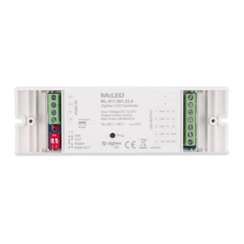 Přijímač ZigBee 3.0 pro stmívání jednobarevných LED pásků, řízení barev RGB, teploty chromatičnosti CCTa řízení RGB+CCT LED pásků (ovladač není součástí). Rozměry: 145 x 46,5 x 16mm. Vstupní napětí: DC 12-36V. 5 kanálů s max. zátěží 4A na 1 kanál (= jedna barva R/G/B/WW/CW): 48W/12V, 96W/24V na kanál. Celková max. zátěž 20A: 240W/12V, 480W/24V, 720W/36V. Po výpadku napájení si pamatuje poslední nastavenou hodnotu/režim.