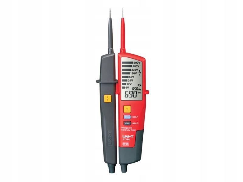 Zkoušečka UT18D. Tester ze série UT18D je navržen pro testování střídavého / stejnosměrného napětí, třífázového napětí, sledu fází, kontinuity a dalších. Tato řada je zařazena do kategorie CAT IV 600V a splňuje standard IP65. Na rozdíl od UT18C, má tester UT18D podsvícení LCD displeje. Tyto testery napětí jsou dokonalým nástrojem pro elektrikáře pro rychlé měření úrovně napětí ve všech prostředích.